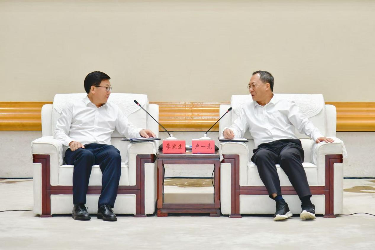 6月17日,中国节能党委书记、董事长廖家生赴广东省阳江市与阳江市委书记卢一先举行工作会谈,双方就深化合作进行深入交流。