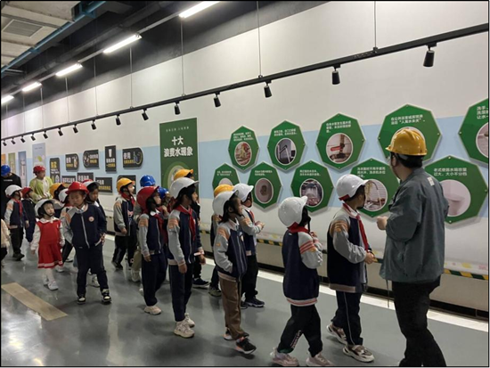 全地埋设计不仅将污水处理构筑物全部隐藏于地下,更通过密闭空间对设备噪声进行收集处理,对臭气实施100%集中净化,彻底打破了“污水处理厂=脏臭源”的固有认知。 更令人欣喜的是,这座绿色工厂已成为传播生态文明理念的重要载体。作为合肥市生态环境教育基地,胡大郢净水厂每年举办超过20场“节水课堂进校园”活动,把“一滴污水的低碳之旅”故事送进十余所中小学。孩子们通过乐高模型模拟污水处理流程,在寓教于乐中种下绿色发展的种子。 在胡大郢净水厂“国企开放日”活动中,孩子们戴着安全帽穿越地下处理车间,直观见证污水处理的“碳足迹消弭”过程。“污水变清水的旅程,也是碳减排的旅程。”稚嫩的声音里,饱含着对未来绿色生活的向往。 从地下到地上,从治理到教育,胡大郢净水厂以创新的立体布局、先进的环保技术、生动的科普实践,走出了一条生态优先、绿色发展的新路径。它不仅是环巢湖生态保护的一张“活名片”,更是新时代城市与自然和谐共生的生动注脚。在这片曾经可能被视为“边缘地带”的土地上,正在上演一场关于绿色转型、空间重构与生态文明的时代叙事。