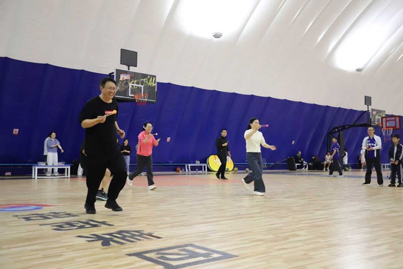 赛场逐风,竞技热情燃动初冬。运动会紧扣“强体魄、聚合力、促发展”目标,精心设置比赛项目:三人篮球赛中,球员们默契配合、快速攻防,每一次精准传球与三分投射都引得喝彩连连;羽毛球场地内,选手们身姿矫健,网前截击与后场扣杀尽显灵动与力量;乒乓球赛台上,小小银球来回穿梭,推挡、抽杀间尽展技术底蕴;而趣味比赛一度成为全场焦点——“筷子夹球”考验专注与耐心,参赛选手屏息凝神、巧手翻飞,欢笑声与加油声此起彼伏;赛程最后的拔河比赛将现场氛围推向高潮,双方队员紧握长绳、齐声呐喊,双脚扎根地面、身体后倾的瞬间,是力量的凝聚,更是团队精神的具象化表达。