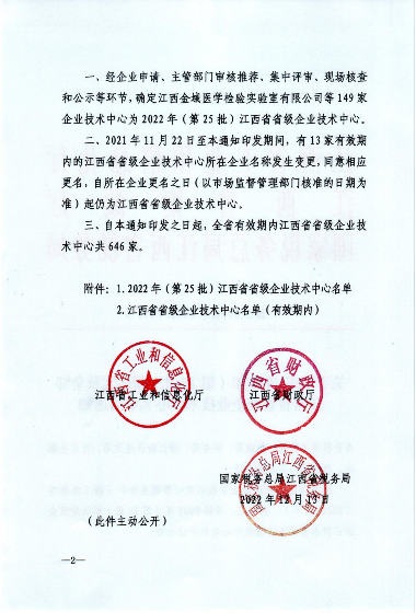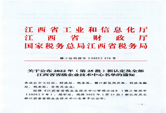 江西公司技术中心通过江西省省级企业技术中心认定 |