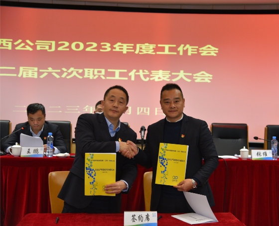 ? ? ? ?会上,对荣获集团“中节能美丽中国建设·安全环保标准化示范单位”的晶和科技进行了授牌,表彰了2022年省级乡村振兴优秀驻村干部和集团公司、江西公司先进员工,签订了生产经营和安全环保目标责任书。 ? ? ? ?江西公司领导班子成员,在昌主管级及以上员工,下属公司班子成员,职工代表,以及各部门、各水厂职工分别在主、分会场参加会议。