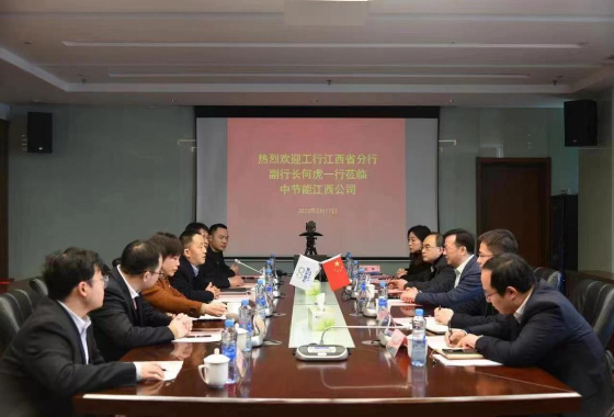 ? ? ? ?张维对何虎副行长到访江西公司表示欢迎,感谢工行江西分行长期以来对江西公司高质量发展给予的支持,简要介绍了江西公司主要业务情况。他表示,江西公司作为中国节能在赣子公司,深入贯彻习近平生态文明思想,始终践行央企担当,积极落实国家“双碳”战略,通过公司的污水处理、绿色建筑、节能服务三大主业,致力于绿色发展、循环发展、低碳发展,愿意进一步深化与工行江西分行的合作,为打造“美丽中国”江西样板作出更大贡献。 ? ? ? ?何虎介绍了工行江西省分行基本情况。他表示,工行始终坚持绿色发展理念,重点支持环保产业等实体经济行业,希望通过此次走访加深双方合作,更好地服务于江西公司环保主业,共同绘就绿色发展蓝图。 ? ? ? ?工行江西省分行金融业务部副总经理朱升真、南昌分行副行长万欣以及相关支行负责人,江西公司总经理助理王先勇、财务部及综合部负责人参加会见。