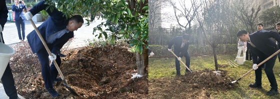 ? ? ? ?大地回春,万木更新。为深入践行“绿水青山就是金山银山”的生态文明理念,进一步增强职工义务植绿护绿意识,3月10日上午,江西公司在中节能国际中心园区内举行“践环保初心,做植树模范”义务植树活动。江西公司党委书记、总经理张维等在昌领导班子成员与职工代表一起参加植树活动。 ? ? ? ?活动现场,领导干部率先垂范,带领大家扶树填土、植树灌溉,现场一片热火朝天的景象。一锹土、一桶水,在大家齐心协力地配合下,一株株新栽下的绿树英姿勃发、迎风挺立。