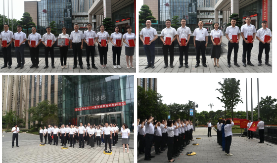 ? ? ? ?百年风华,不忘初心。为热烈庆祝中国共产党成立102周年,回顾党的奋斗历程,讴歌党的光辉业绩,传承党的优良传统,6月30日,江西公司党委结合学习贯彻习近平新时代中国特色社会主义思想主题教育,深入开展庆“七一”系列活动,公司董事长洪继元,党委书记、总经理张维,以及公司领导班子出席活动。 ? ? ? ?激发爱国热情,砥砺强国之志。伴随庄严雄壮的国歌,鲜艳夺目的五星红旗冉冉升起,迎风飘扬。全体人员列队整齐,精神饱满,肃然而立,怀着对党和祖国的崇高敬意,向国旗行注目礼,祝福党的事业兴旺发达,伟大祖国繁荣昌盛。 ? ? ? ?表彰先进典型,树立奋进标杆。宣读江西公司“两优一先”及优秀党员示范岗表彰决定,并对获奖个人及组织进行表彰奖励。树立了典范与标杆,鼓励全体党员干部以先进为榜样,对标学习、见贤思齐,涵养争先创优、比学赶超的工作氛围。