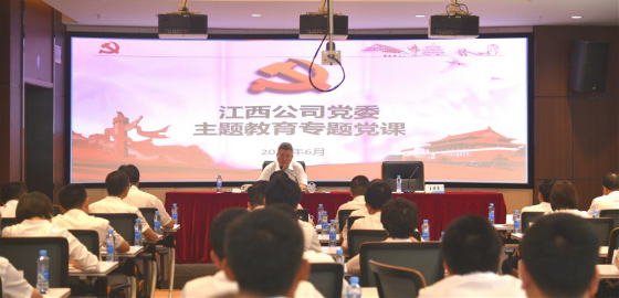 ? ? ? ?党课采用“线下+线上”的形式。江西公司中层及以上人员,各水厂负责人在现场参加党课;公司其他党员、入党积极分子、各子公司班子成员等在分会场通过视频参加党课。