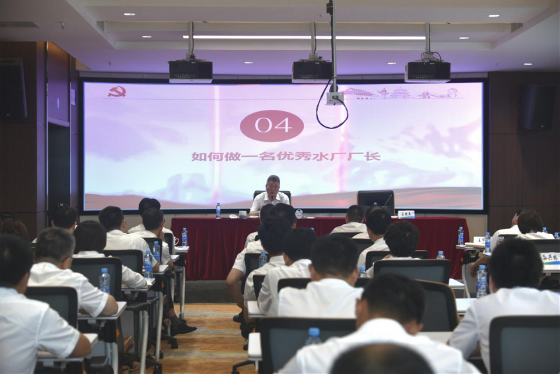 ? ? ? ?洪继元强调,要坚持用习近平新时代中国特色社会主义思想凝心铸魂,强化理论武装,强化对党忠诚,强化道德修养,强化纪律约束,强化作风建设,在坚决守住安全生产、达标排放底线的前提下,精准发力、持续发力,全力以赴完成年度重点工作目标。 ? ? ? ?最后,洪继元以“八段锦”为喻,着重从八个方面讲述了作为一名优秀水厂厂长应具备的能力素养。他指出,一是坚持学习,五项修炼,勤奋钻研,做一名学者;二是以身作则,提高自身能力素质,争当一名排头兵;三是应知应会,掌握丰富的专业知识,争做一名专家;四是增强责任心,履职尽责,做一名实干家;五是真抓实干,树立干事创业的青春榜样,争当一名青年模范;六是宽容仁爱,增强合作共事的精神,争当一名“一家之长”;七是沟通协作,提升统筹协调能力,争当一名“外交家”;八是锲而不舍,学会复盘,不断提升自己的归纳总结能力,争当一名智者。