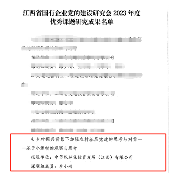 ? ? ? ?近日,江西省国有企业党的建设研究会发布2023年度优秀课题研究成果名单,共有48篇案例获得表彰。江西公司驻村第一书记李小雨编撰课题《乡村振兴背景下加强农村基层党建的思考与对策——基于小源村的观察与思考》成功入选。