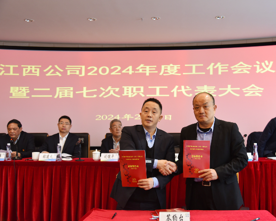 ? ? ? ?会上,晶和科技、荆门公司、武宁水厂和江西公司水费管理办公室等作了经验交流,表彰了集团公司2023年度先进工作者、江西公司2023年度先进单位及优秀员工,签订了经营目标和安全生产环境保护责任书。 ? ? ? ?江西公司中层以上干部,职工代表,各子公司、水厂主要负责同志在主会场参会,各部门、子公司、水厂职工在视频分会场参加会议。