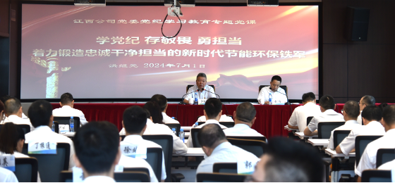 ? ? ? ?党纪教育心存敬畏,聚势未来锻造铁军。洪继元以《学党纪 存敬畏 勇担当,着力锻造忠诚干净担当的新时代节能环保铁军》为题,结合学习党纪法规的心得体会和公司实际,从做政治清醒的明白人、做清正廉洁的干净人、做履职尽责的带头人三个方面,为全体党员上了一堂生动形象且富有深刻教育意义的专题党课。 ? ? ? ?洪继元指出,在全党开展党纪学习教育,是以习近平同志为核心的党中央加强党的纪律建设、推动全面从严治党向纵深发展的重要举措。各级党组织要把组织党员深入学习深刻领会新修订的《中国共产党纪律处分条例》为重点,深化理解和把握党纪学习教育的目的意义和目标要求;广大党员干部要把纪律挺在前面,时刻绷紧纪律之弦、筑牢作风之堤,在讲规矩中干好事、在守纪律中干成事,把遵守党的政治纪律和政治规矩落实到工作中去。 ? ? ? ?洪继元强调,广大党员干部要以党纪学习教育为契机,在学纪、知纪、明纪、守纪上下功夫,时刻做到心中有党、心中有民、心中有责、心中有戒,让政治意识、纪律意识、规矩意识内化于心、外化为行,为江西公司高质量发展凝聚干事创业的磅礴伟力。