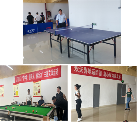 ? ? ? ?活动现场,欢声笑语此起彼伏,洋溢着浓厚的节日氛围。精心设计的比赛项目不仅传承了中华传统文化中对团圆与和谐的向往,更融入了现代体育竞技的激情与活力。台球桌上,选手们以杆为笔,勾勒精准弧线,每一次碰撞都激荡着智慧与策略的火花;乒乓球台前,小球飞舞,快如闪电,展现了参赛者敏捷的身手与娴熟的技艺;跳绳区域,彩绳翻飞,跃动的身影如同跳跃的音符,编织出一曲青春活力的赞歌;而扑克牌比赛,则是一场智慧与运气的较量,让参与者在轻松愉悦的氛围中享受思维碰撞的乐趣。
